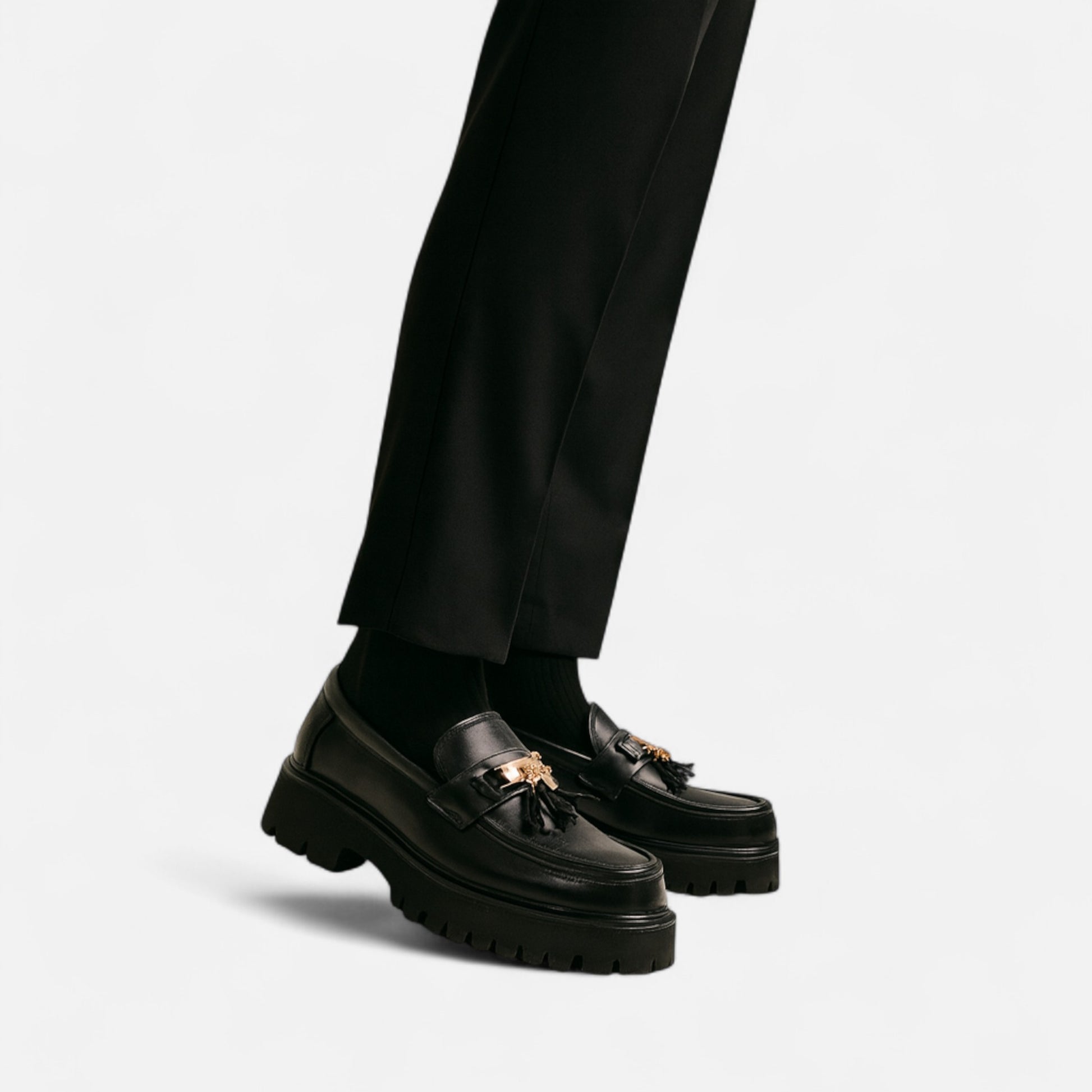 Suitable for professional settings as well as special occasions, these black leather shoes pair perfectly with a suit or dressy outfit. A true staple of the masculine wardrobe, they reflect a style that transcends time with distinction.