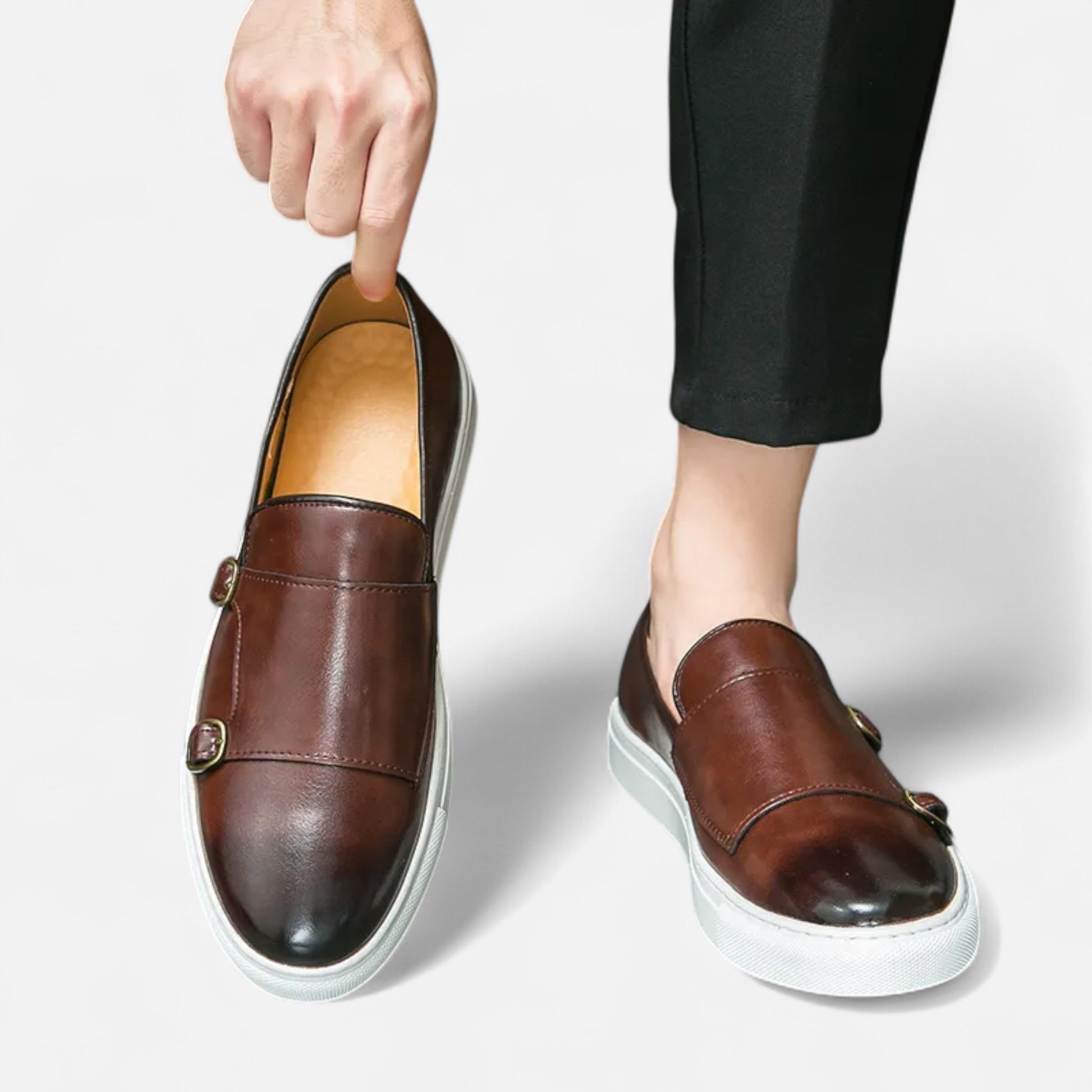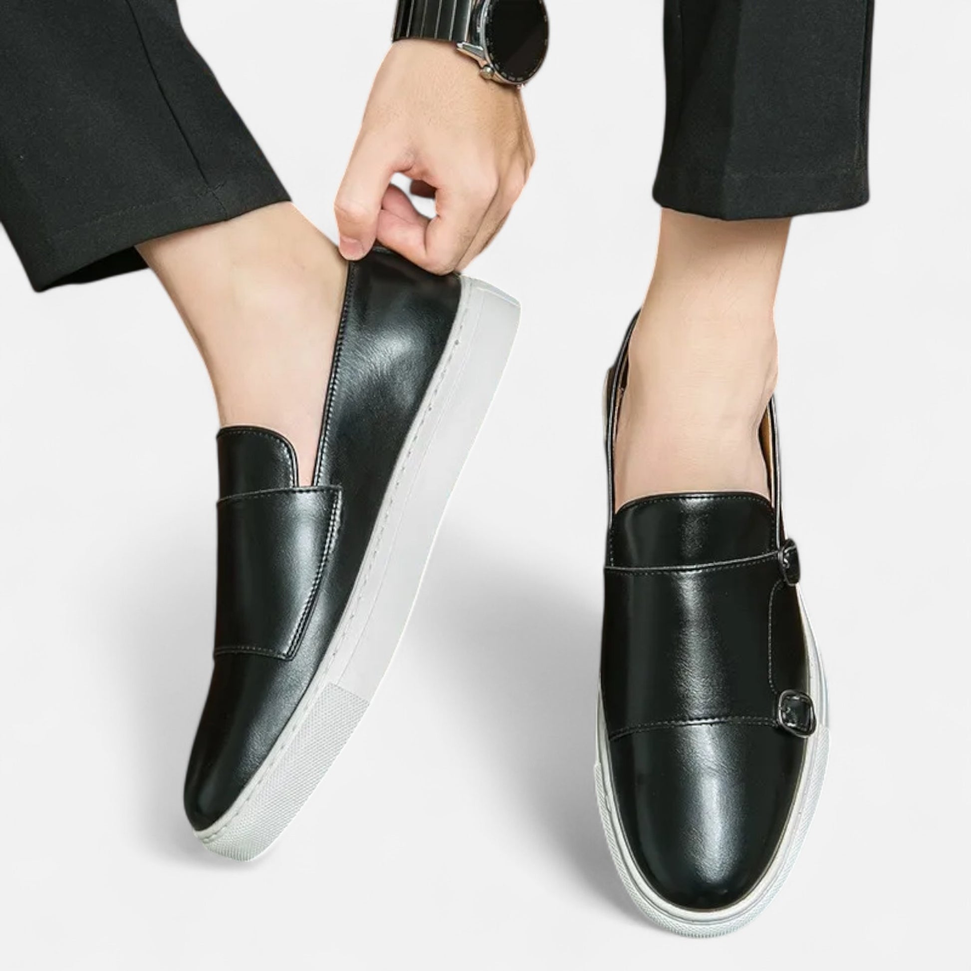 These loafers pair perfectly with dress pants or elegant chinos. Their classic, understated yet confident silhouette makes them an essential piece in the masculine wardrobe, symbolizing chic and versatile style.